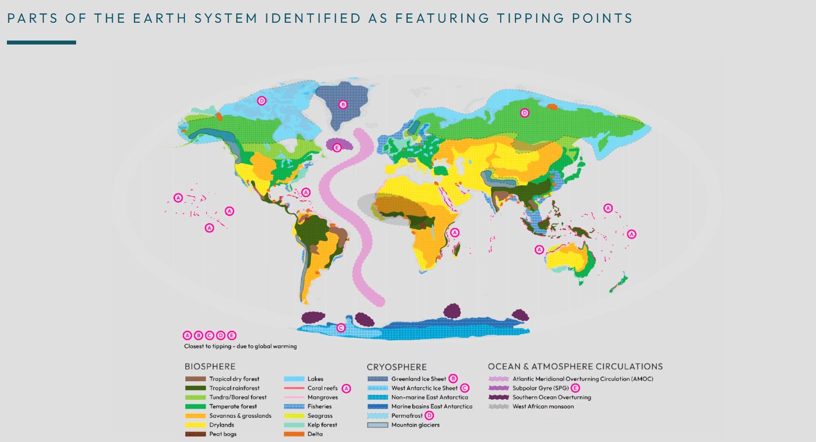 Les parties du système terrestre identifiées comme présentant des points de bascule. @Global Tipping Points