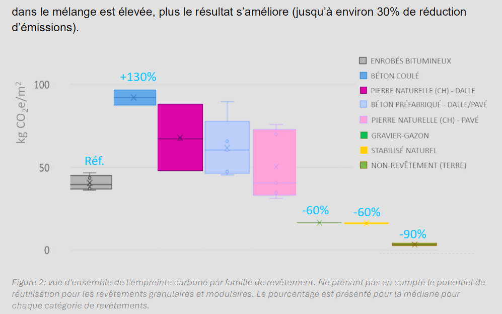 Dans sa stratégie d’adaptation aux nouvelles réalités climatiques, la ville de Lausanne vient de publier un rapport consacré aux revêtements des surfaces extérieures. L’institut de recherche Energy de la Haute École d’ingénierie et d’architecture de Fribourg (HEIA-FR), en collaboration avec l’entreprise Ecoscan SA, a ainsi évalué à la fois « l’empreinte carbone des revêtements et cherché à définir les principes d’aménagement les plus pertinents pour lutter contre le réchauffement de la ville et améliorer sa perméabilité. »